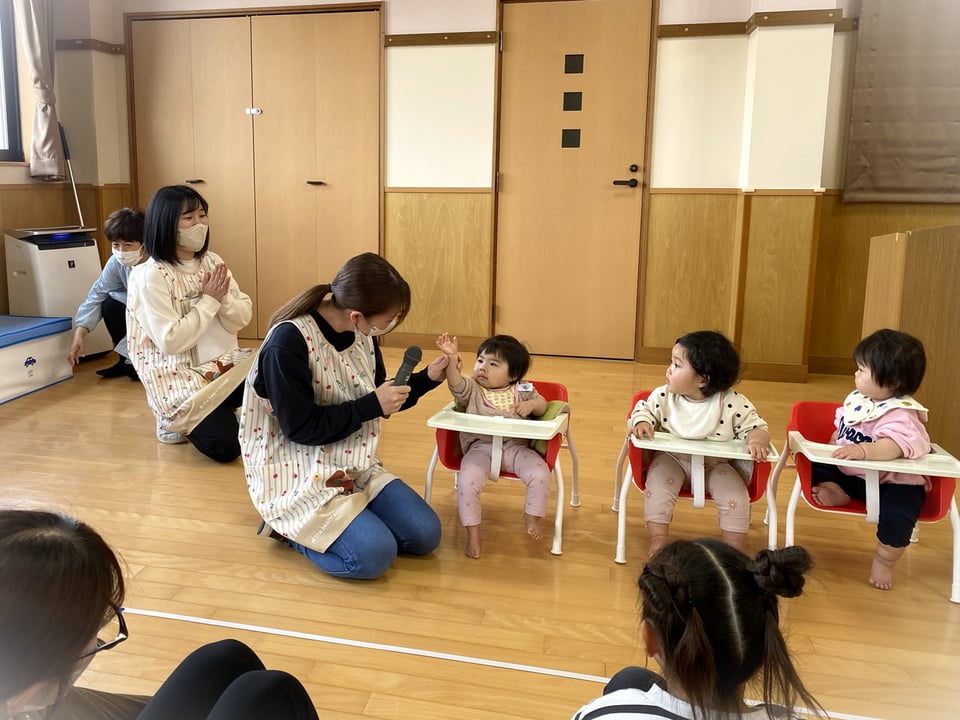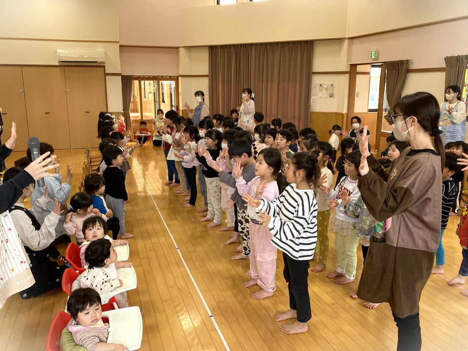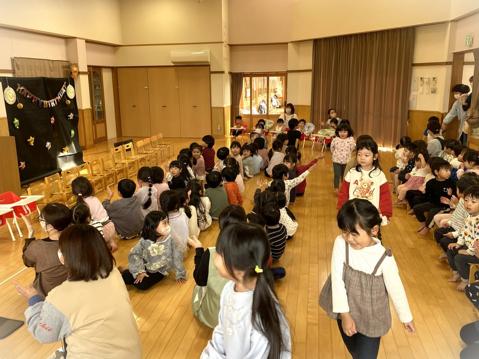 最初はみんなで季節の歌(まつぼっくり・山の音楽家・やきいもグーチーパー・きのこ)を歌いました。