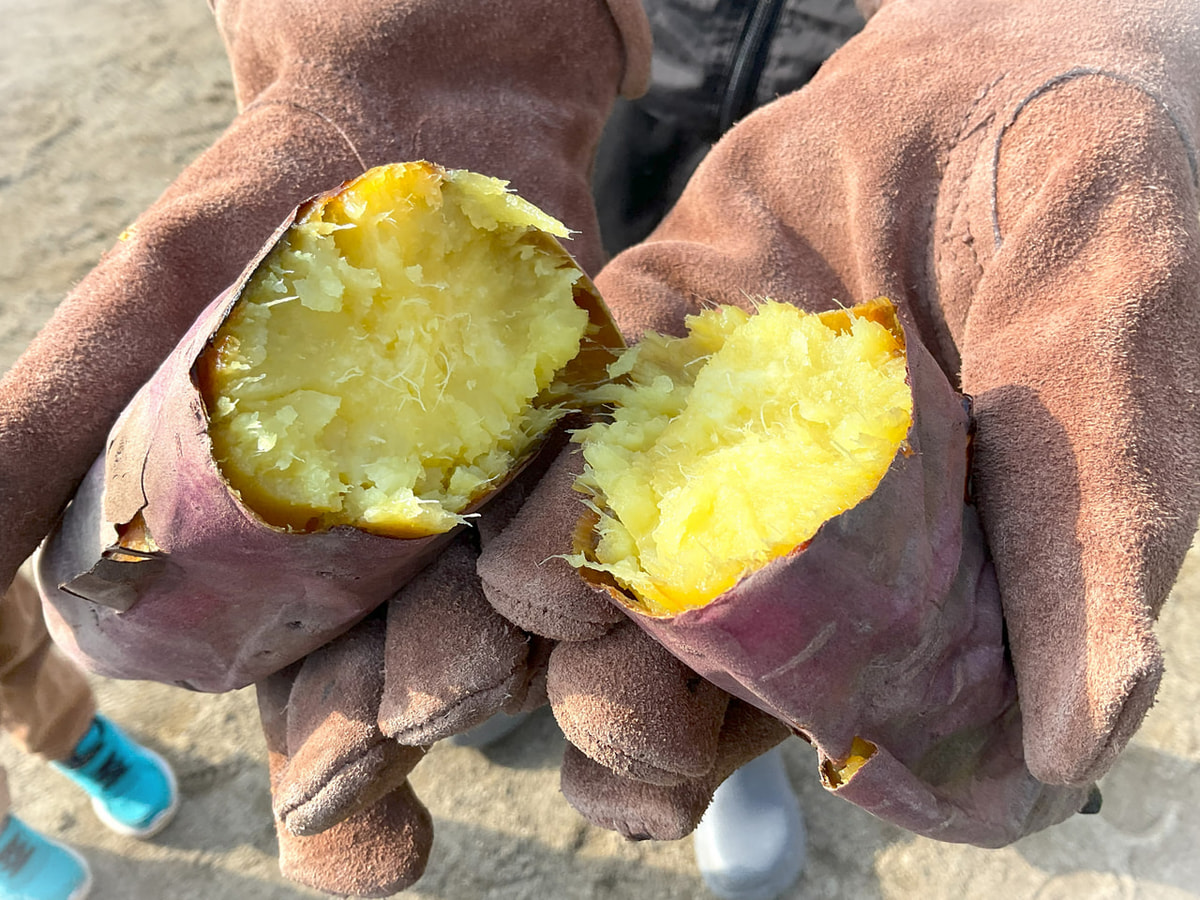 完成したホクホクの“やきいも”を見て…ナイスリアクション👍
