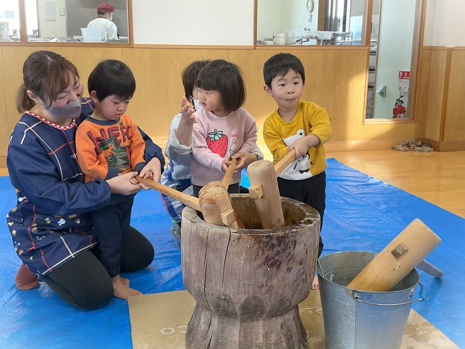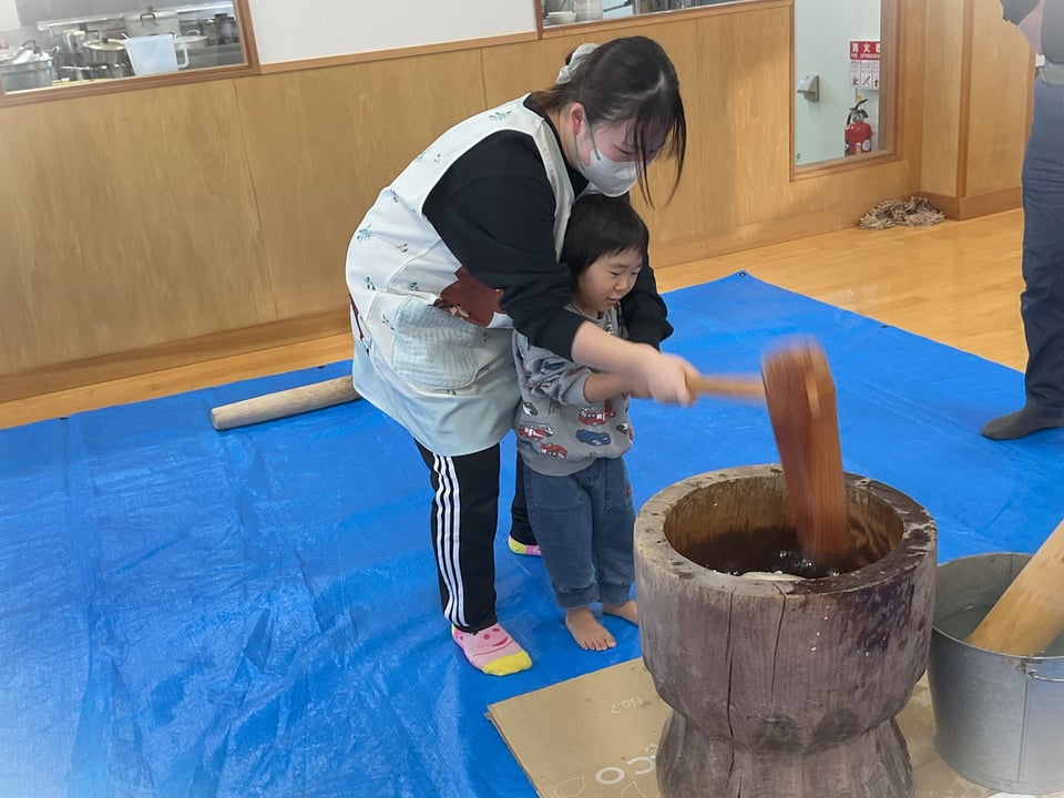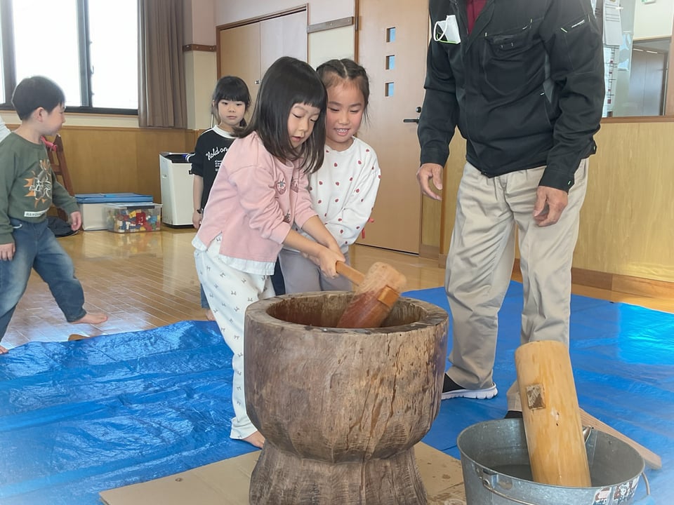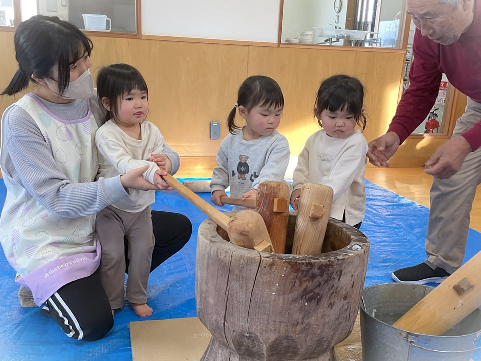 「よいしょ!よいしょ!」の元気な掛け声に合わせて、まずは園長先生と事務長先生がついてくれました!