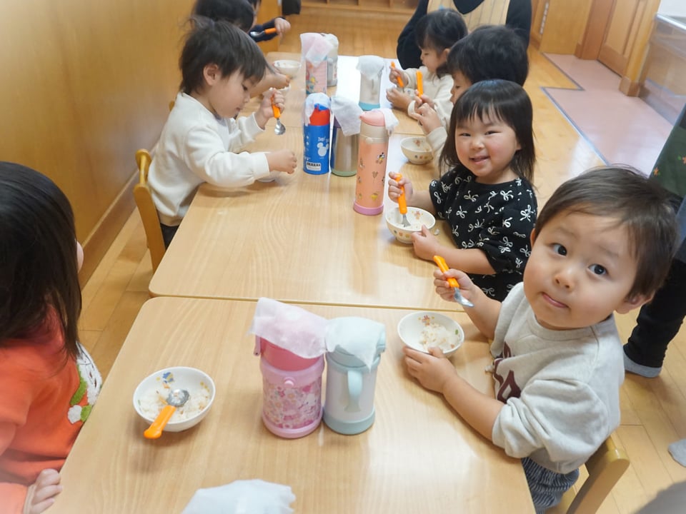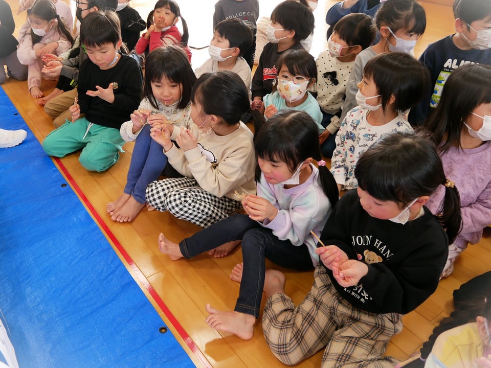 「これ食べたことある!」「美味しいね」「ちょっと固いけど美味しい」と話す子どもたち😊