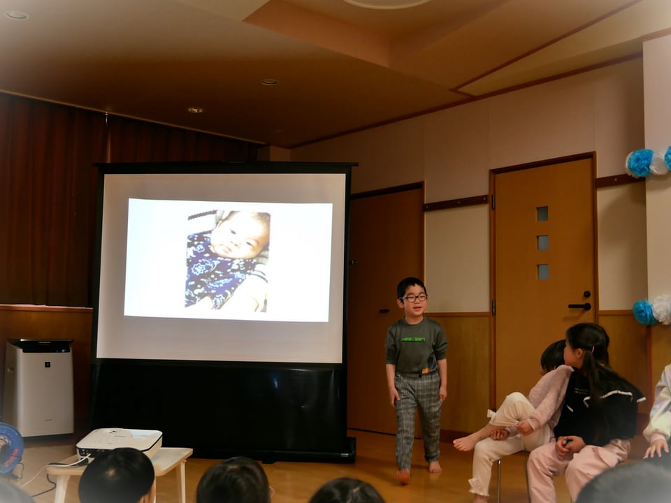 予定では、ここでお別れ会終了…のはずが、先生たちからおもいでムービーのプレゼント☆