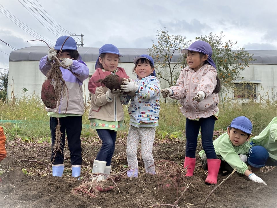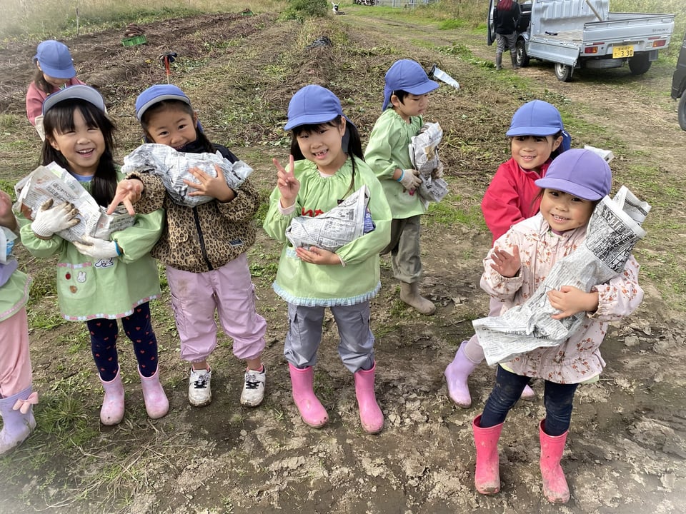 楽しかった~~!!とさつまいも掘りを終えた子どもたち。